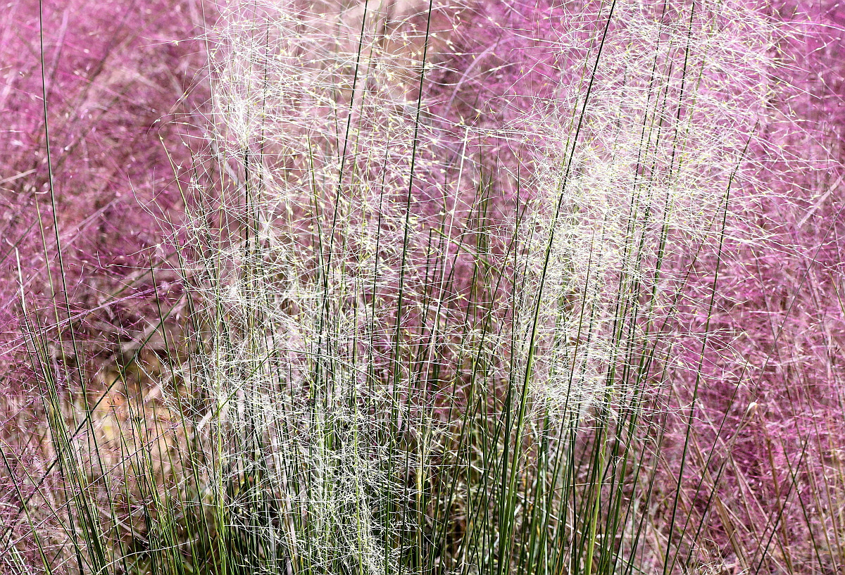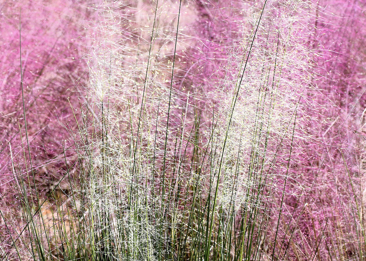 분홍색 꽃이 피는 것은 국명으로 핑크뮬리 'Pink muhly' 라고 부른다.