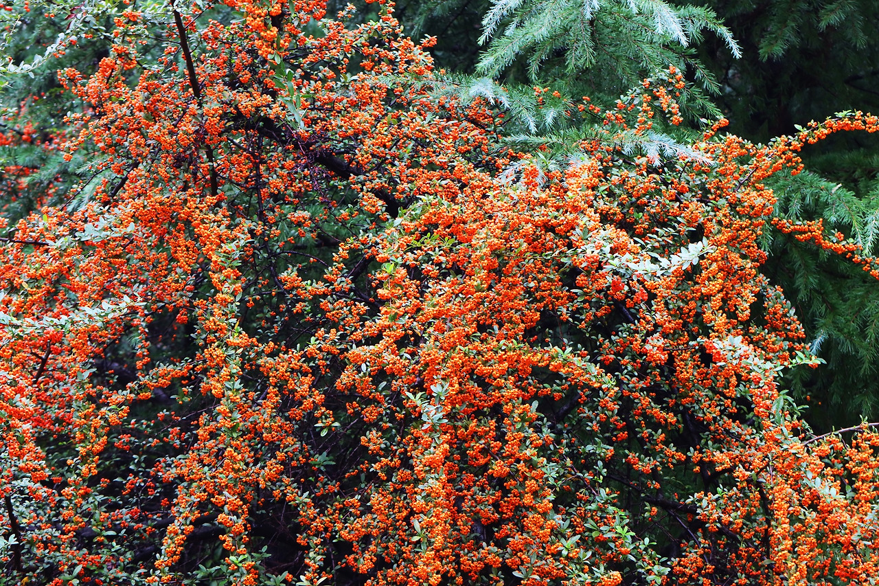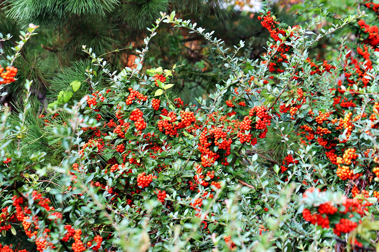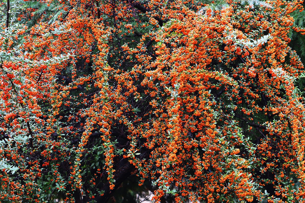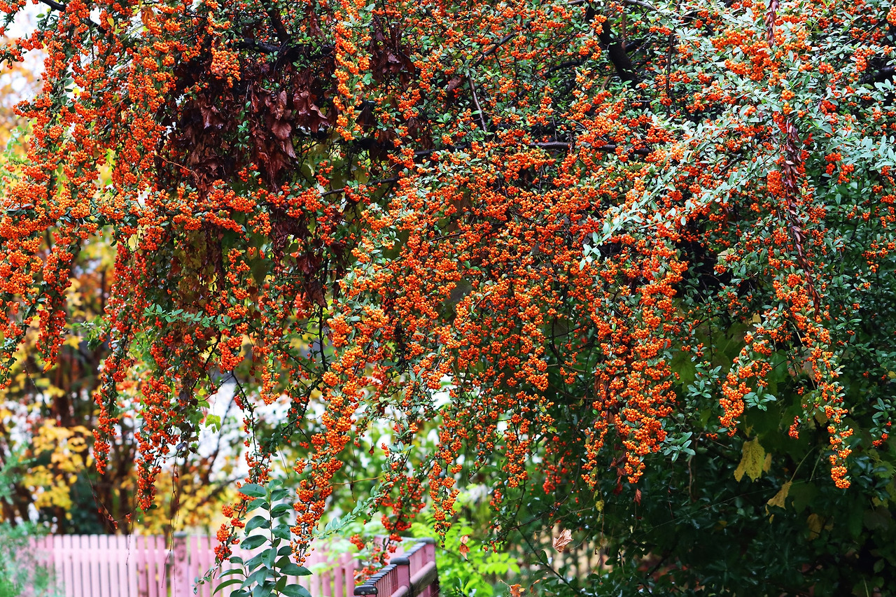 피라칸다는 가을이 되면서 열매가 주황빛으로 물들어