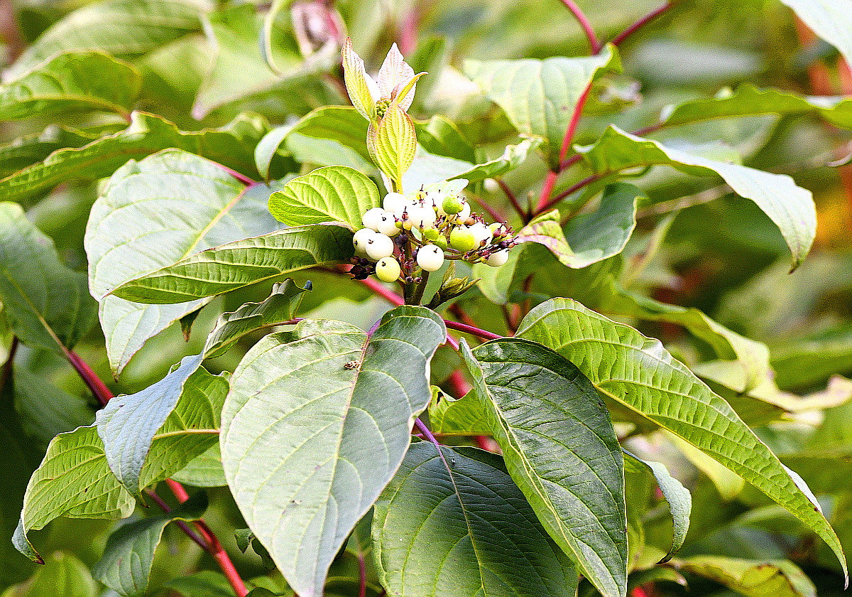 흰말채나무는 홍서목(紅瑞木)이라고도 한다. 산지 물가에서 자란다. 높이 약 3 m이다.