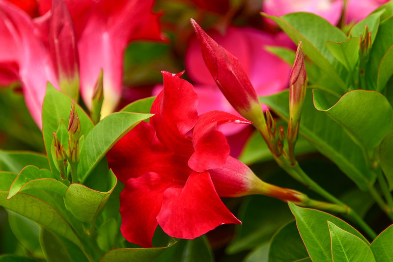 만데빌라 산데리(Mandevilla sanderi)는 브라질이 원산지이며 열대와 아열대에 100종이 분포되어 있다.