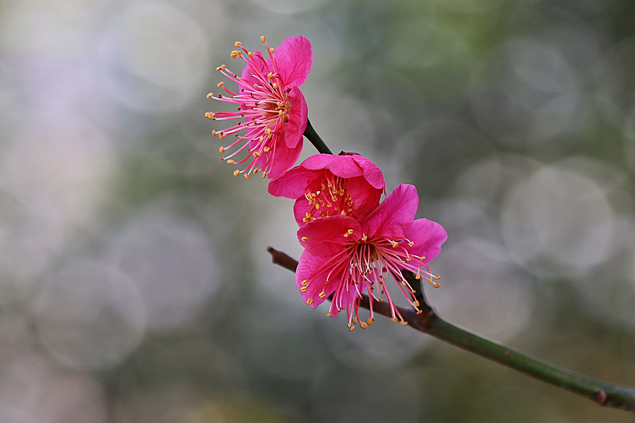 매화는 흰색 꽃이 피는 나무가있고, 붉은색 꽃이 피는 나무가 있습니다.