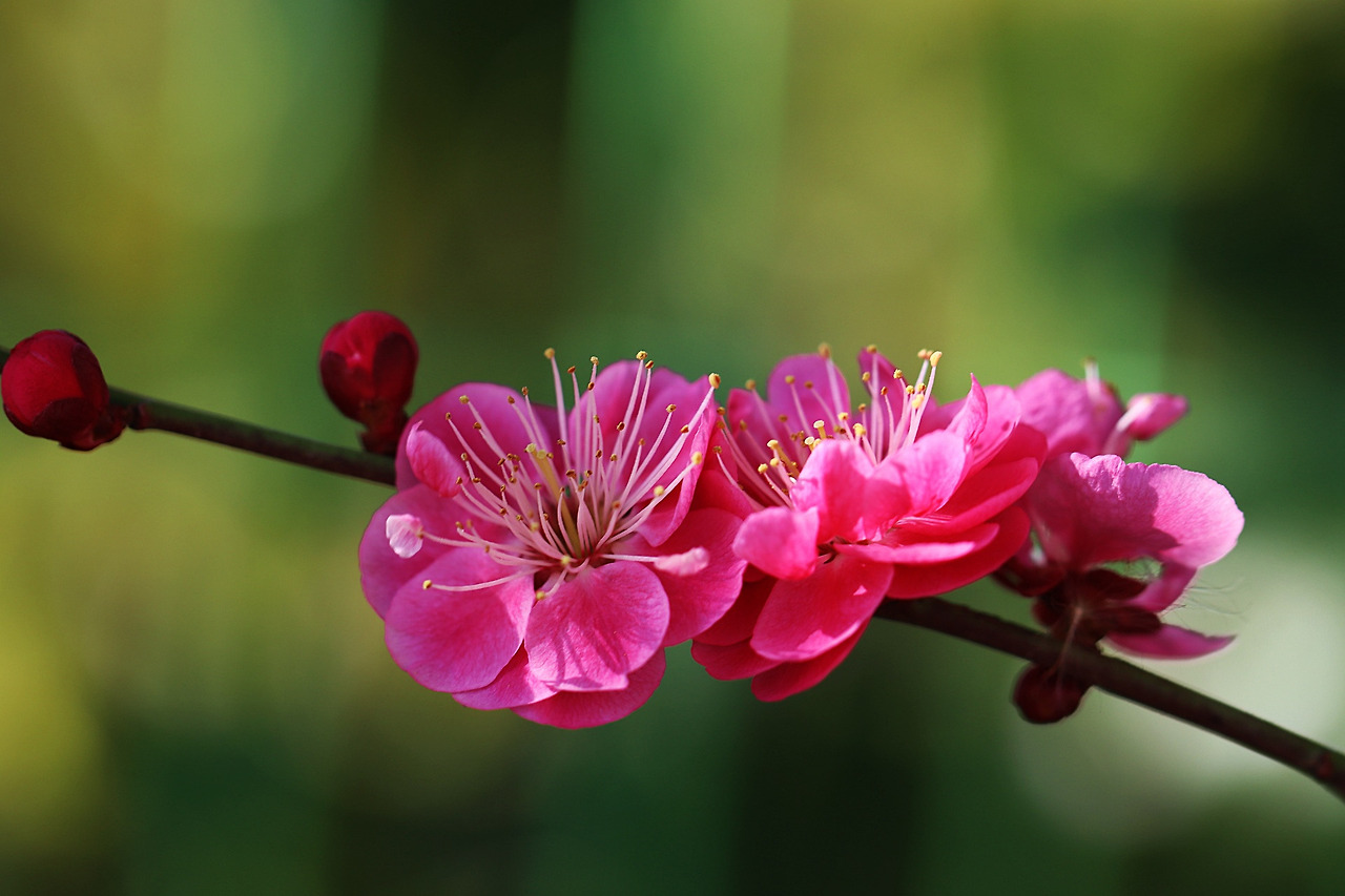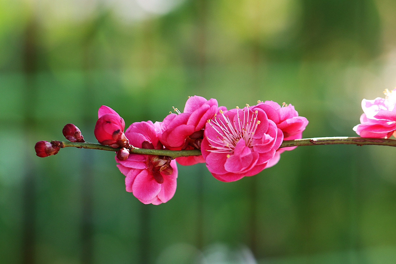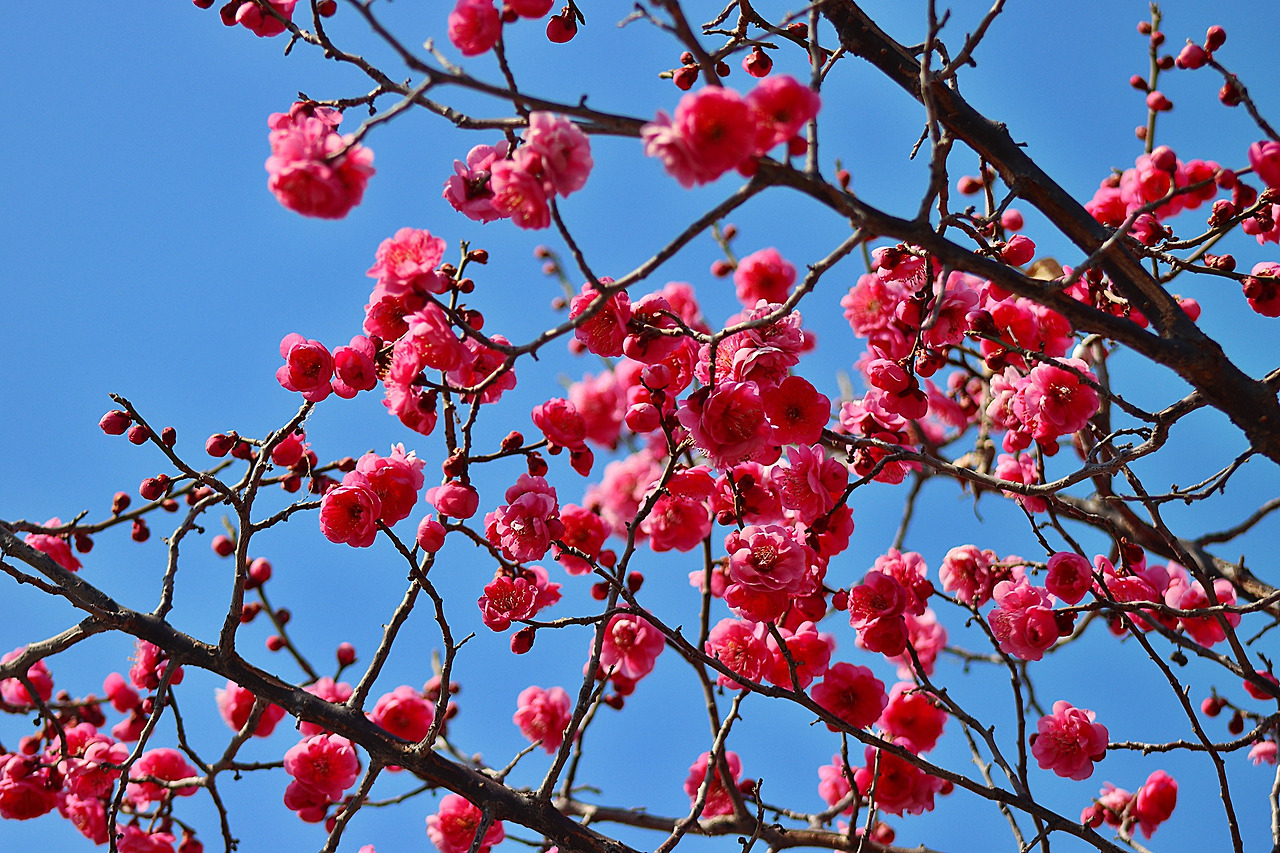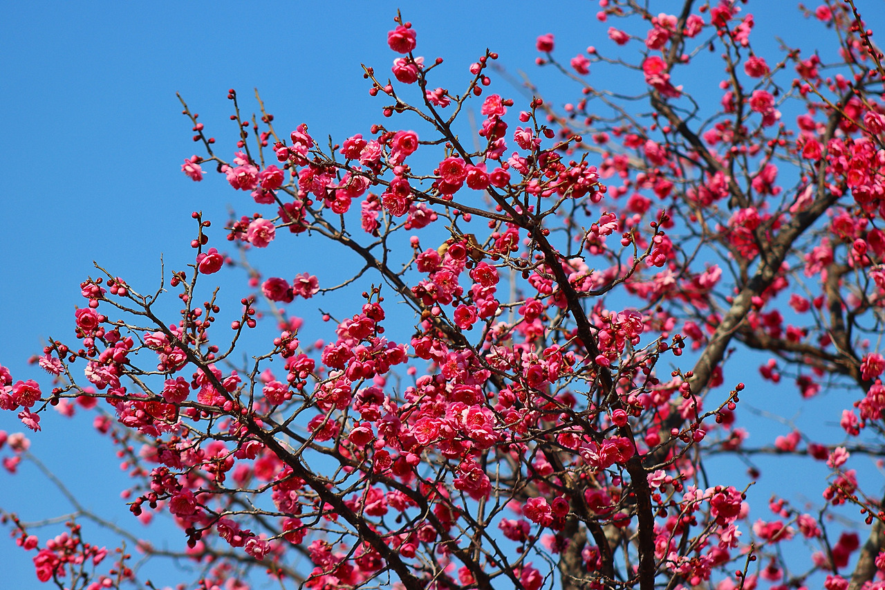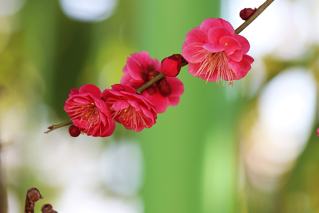 우아하면서도 깊은 홍빛을 뽐내는 품종으로 다른 매화보다 이른 시기에 꽃이 피어