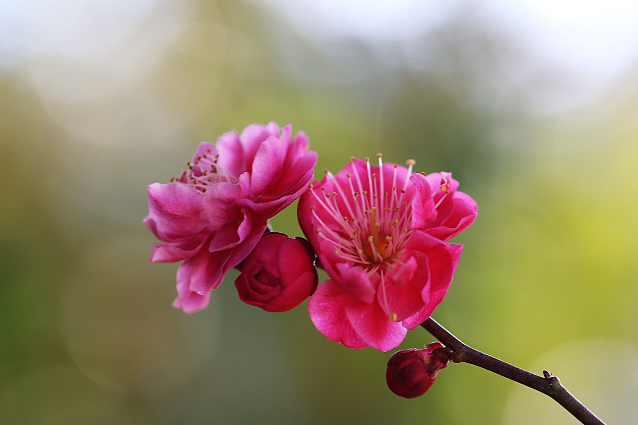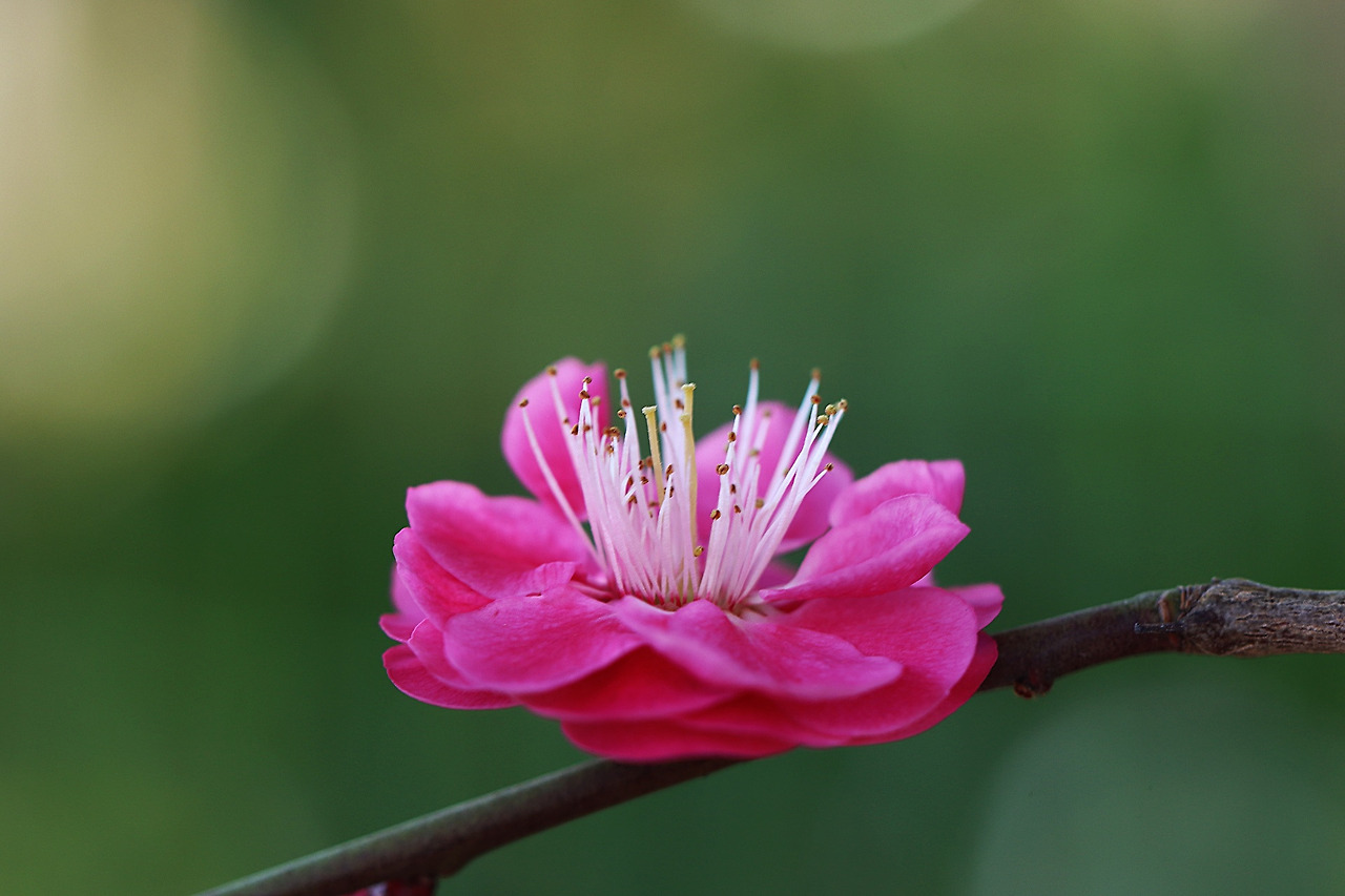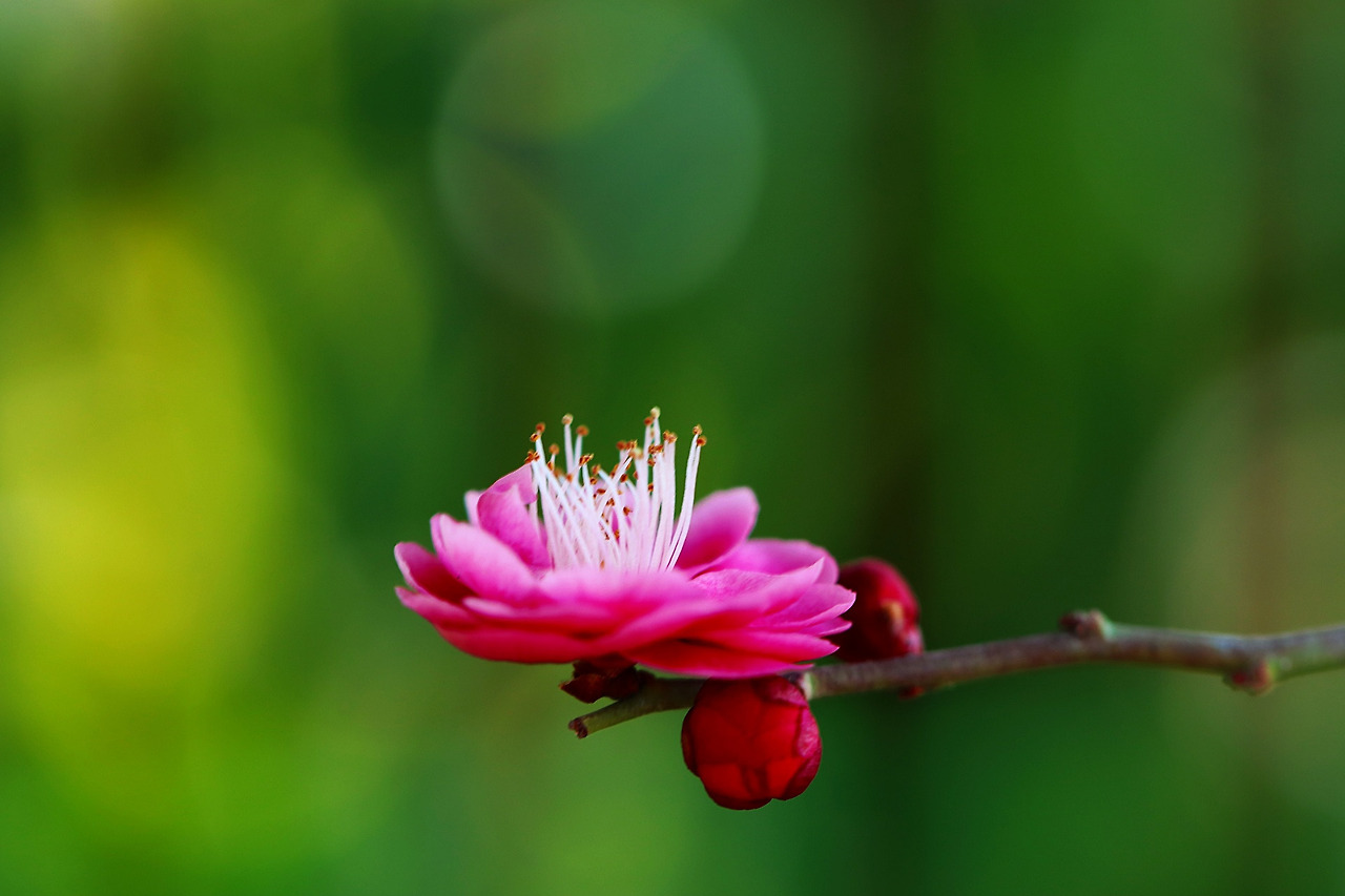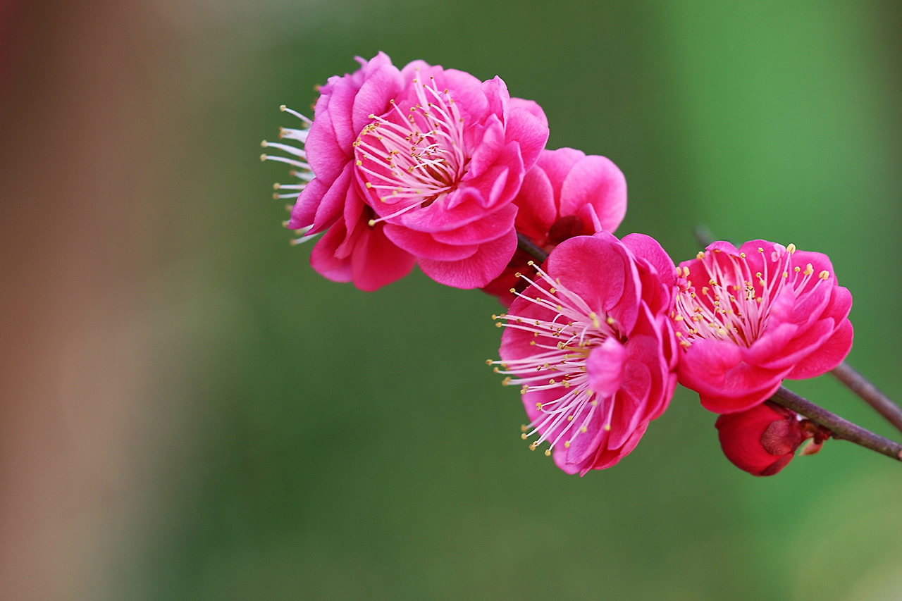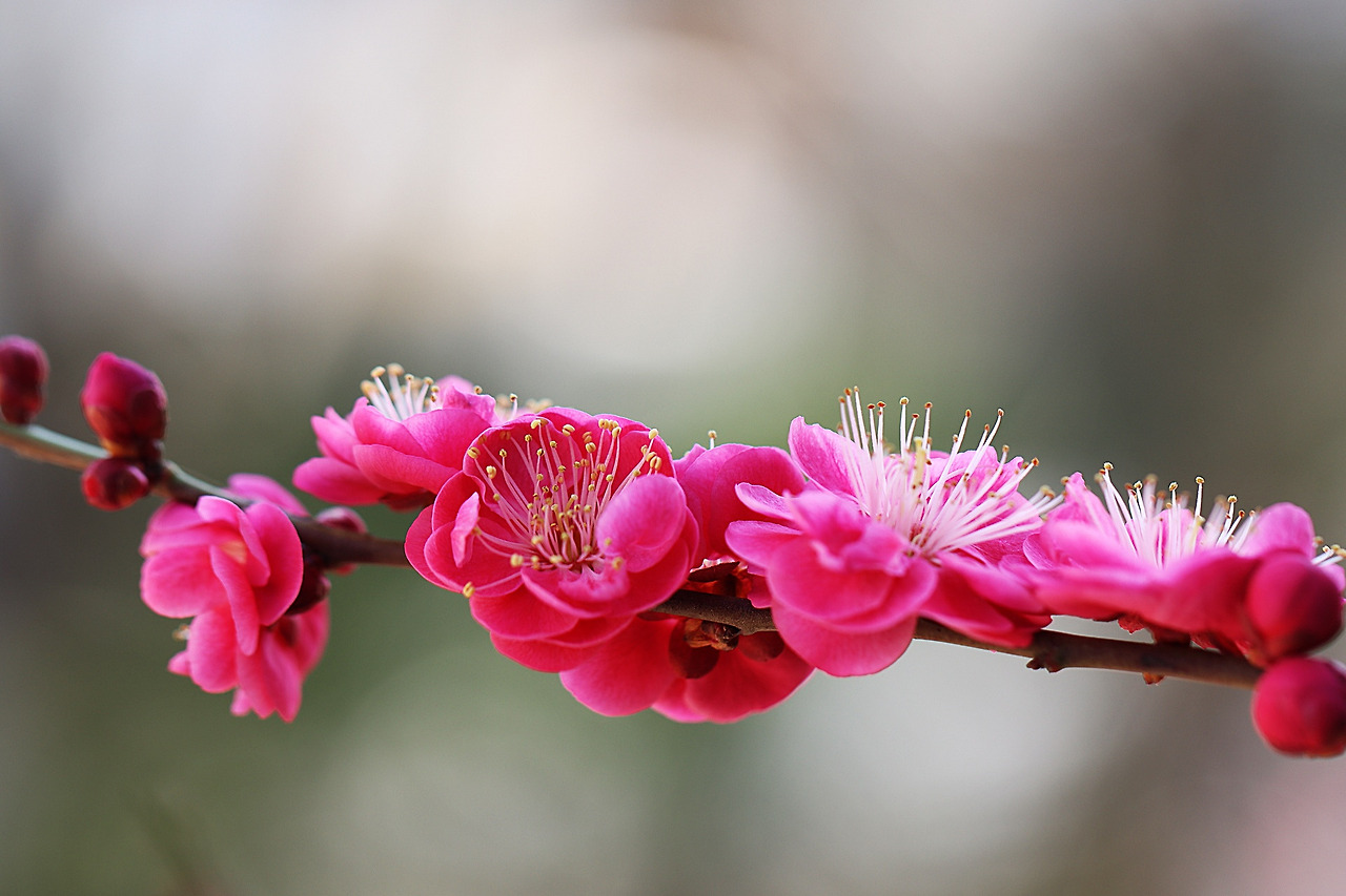 우아하면서도 깊은 홍빛을 뽐내는 품종으로 다른 매화보다 이른 시기에 꽃이 피어