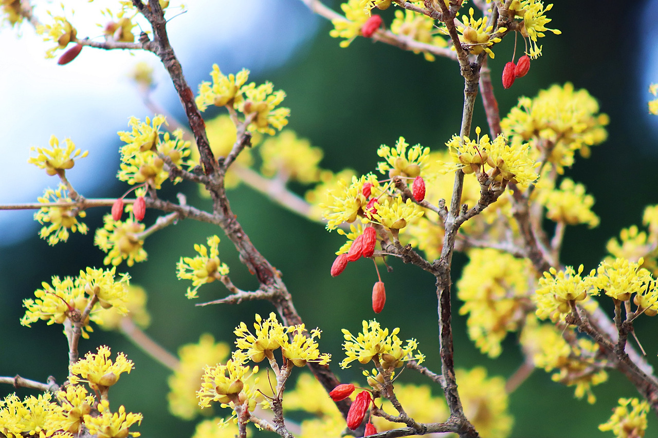 꽃은 3~4월에 양성화로 가지마다 산형꽃차례로 3~5개